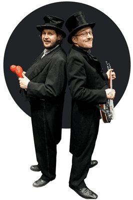På scenen står de (ekte) bestevennene (nygifte)Henrik Bøe Larsen og (småbarnsfar) Tobias Vik, som de siste 25 årene har ledd og spilt teater ammen